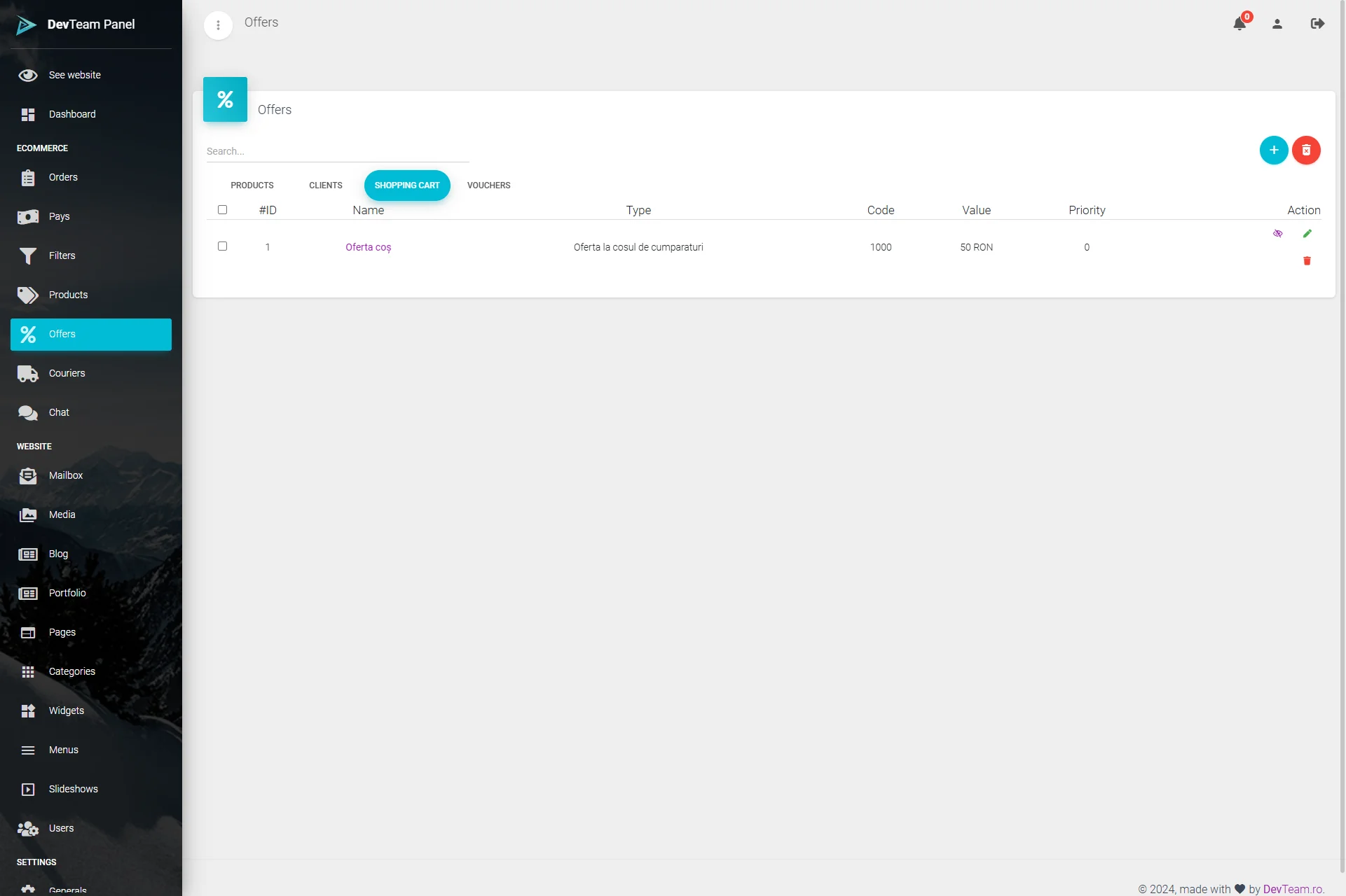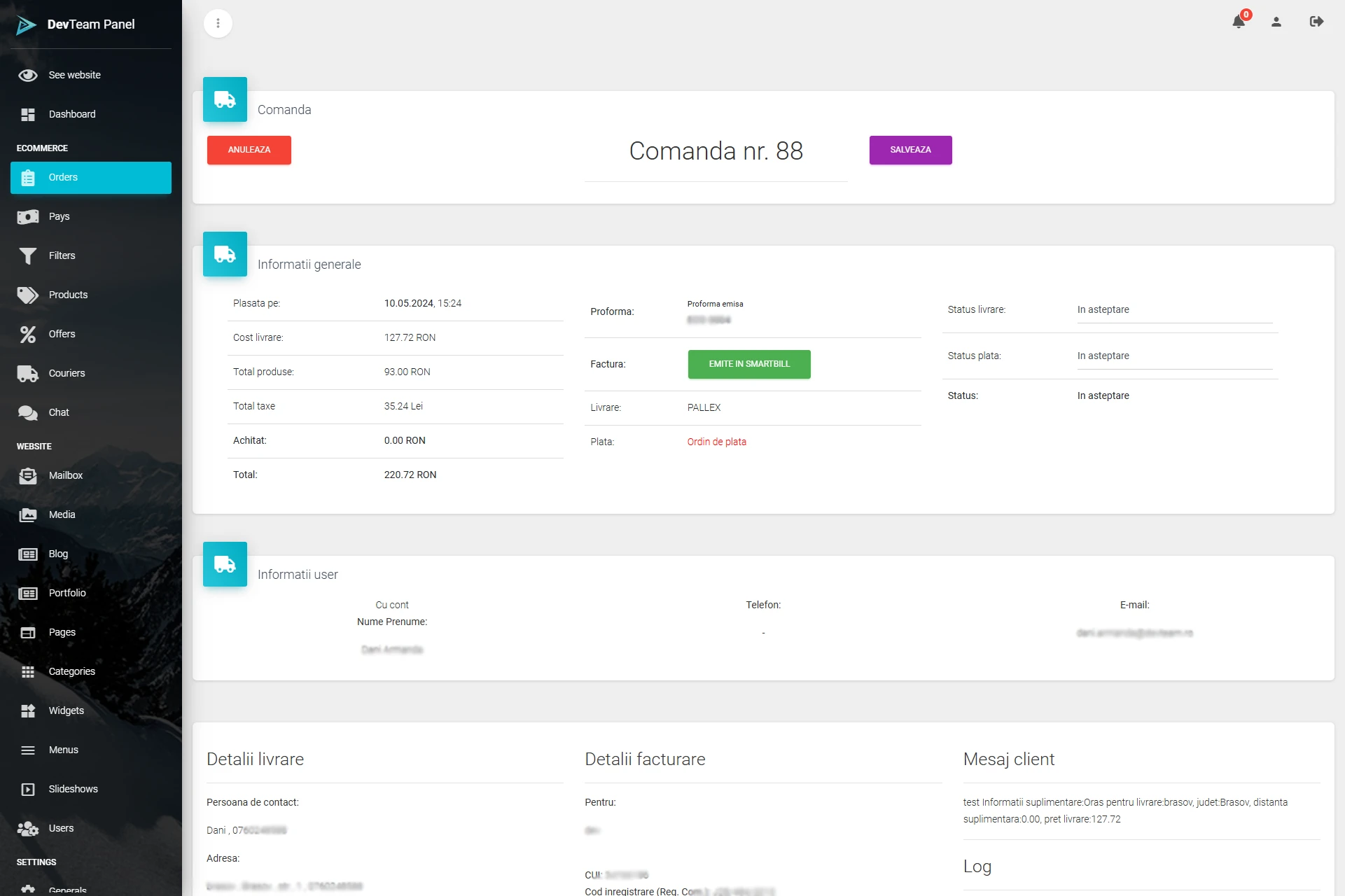 Panou de administrare: gestionare intuitivă a conținutului și produselor.