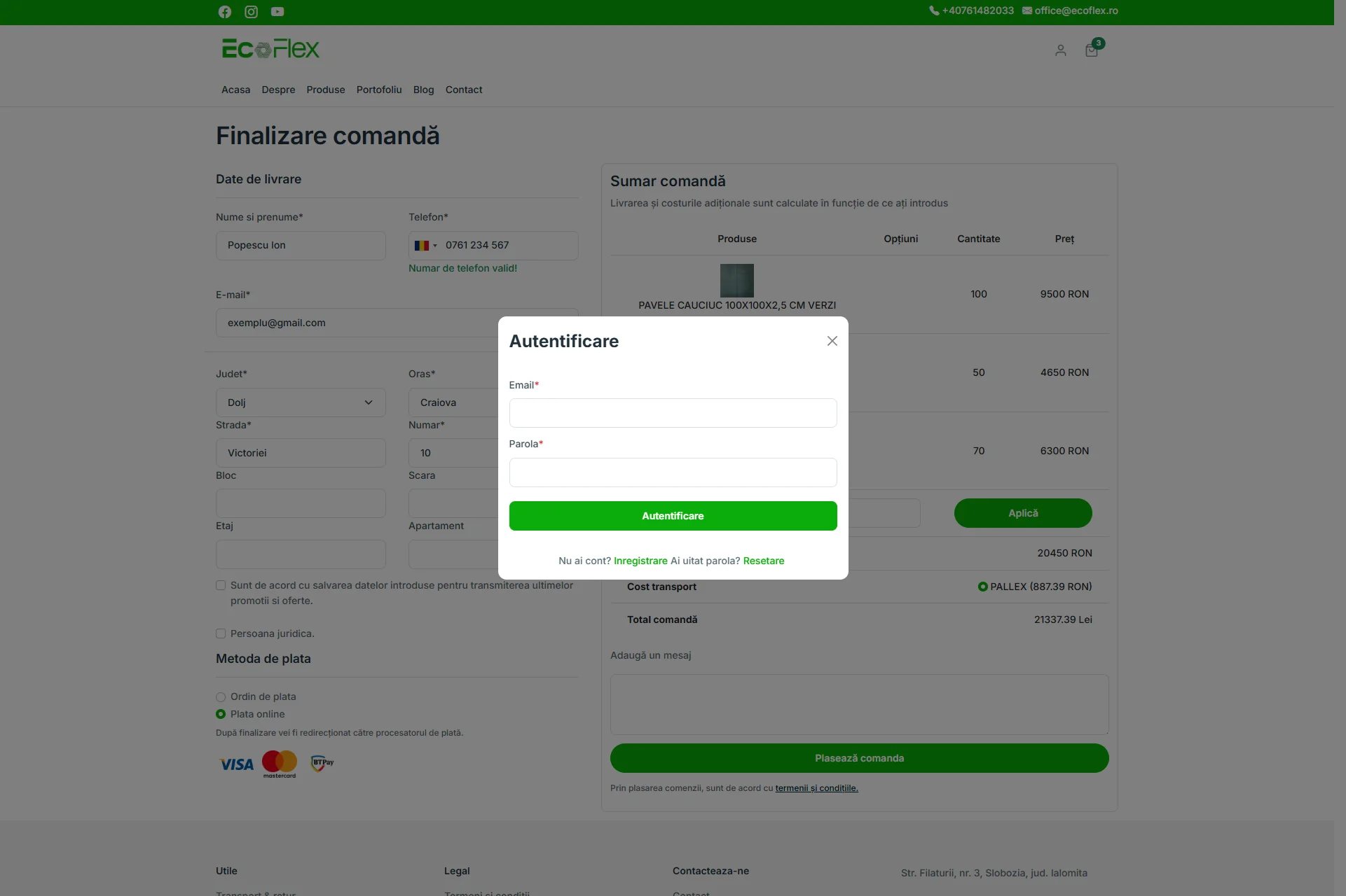 EcoFlex este o fabrică românească specializată în producția de pavele din cauciuc reciclat, un produs durabil și prietenos cu mediul. Pentru companie am dezvoltat o platformă web complet personalizată, menită să reflecte valorile brandului și să susțină vânzările online printr-o prezență digitală modernă, rapidă și ușor de utilizat.