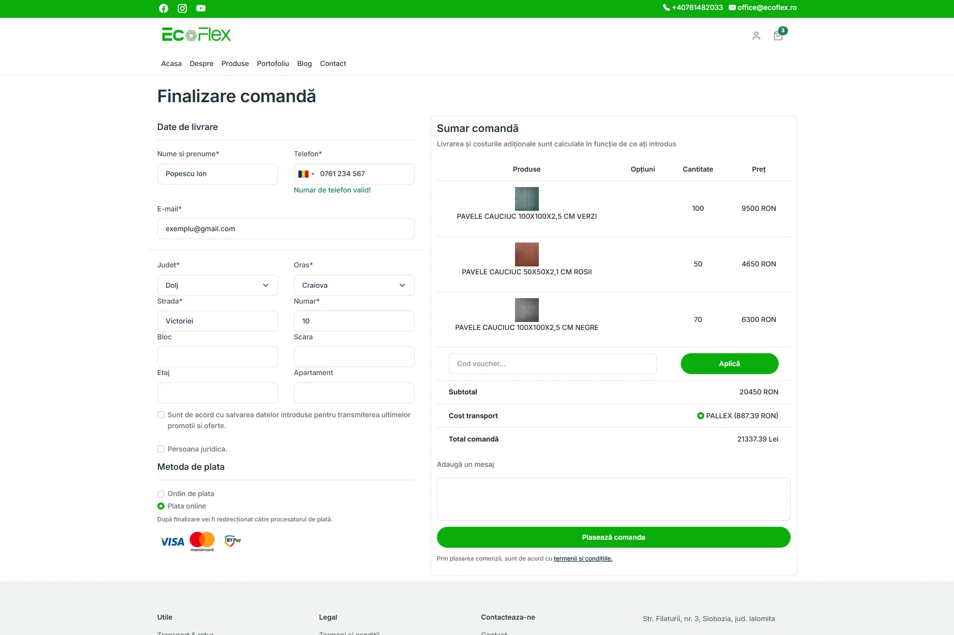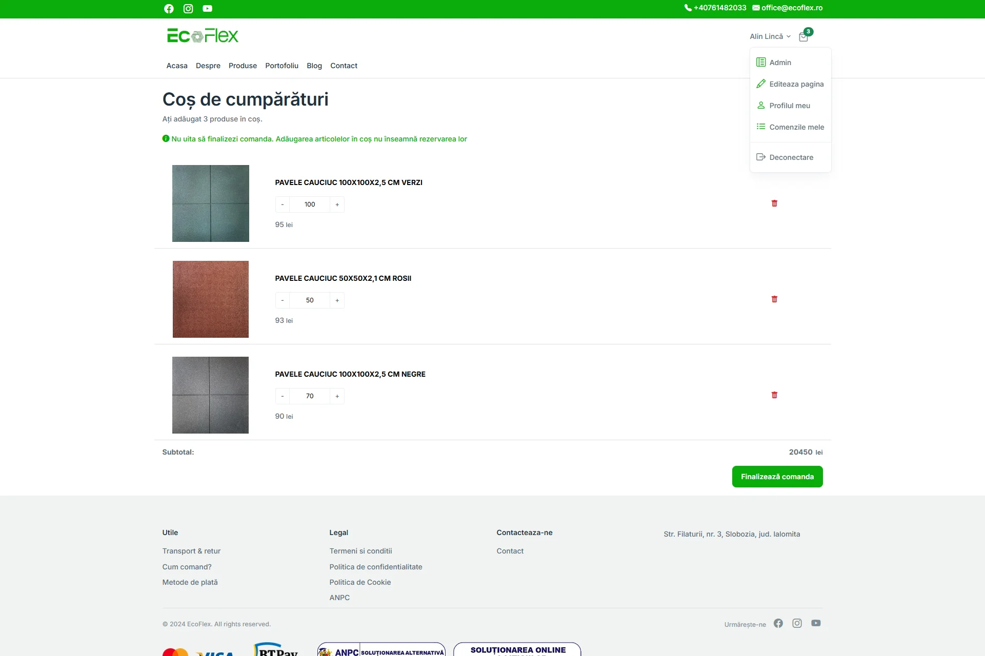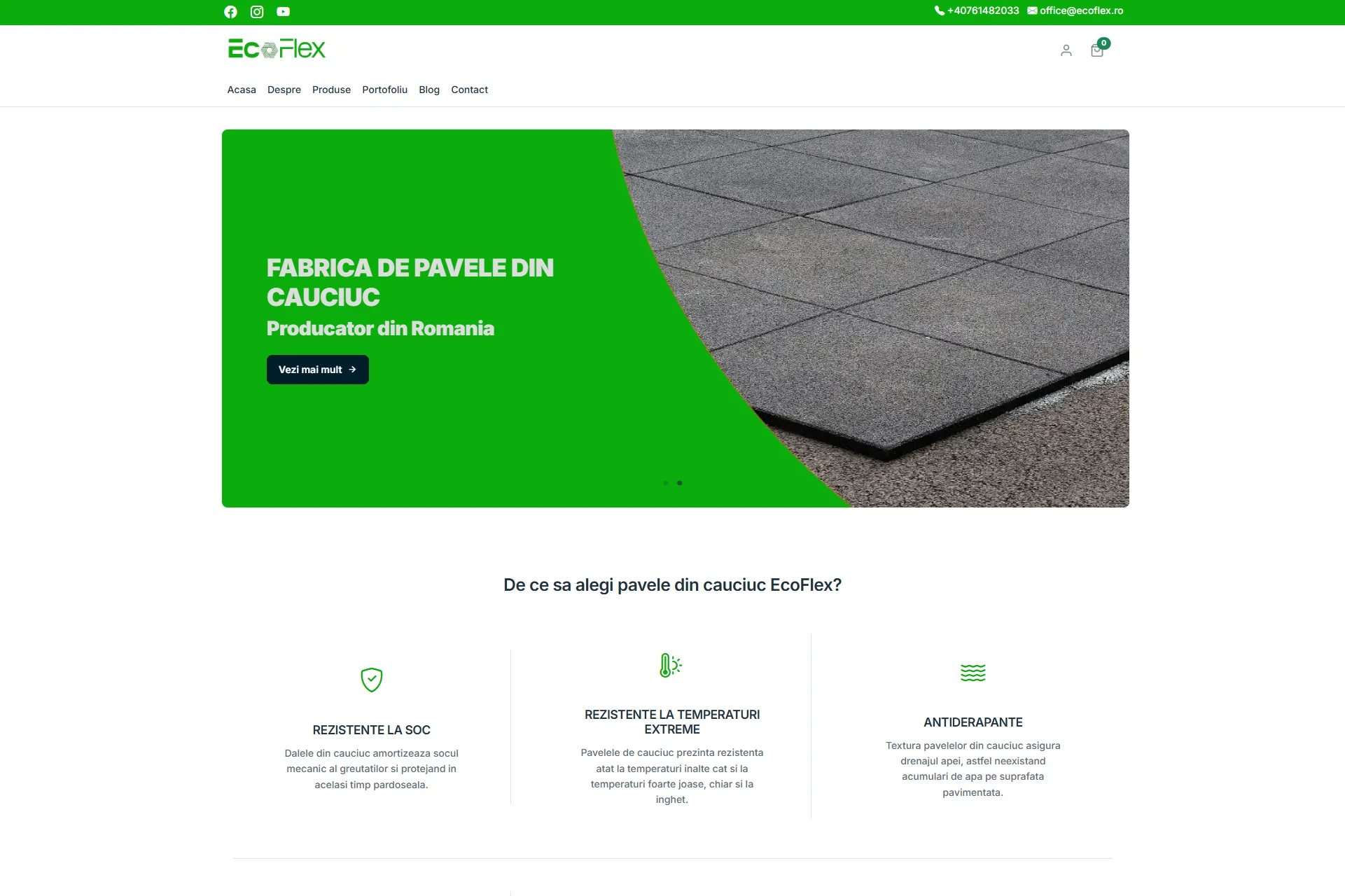 EcoFlex este o fabrică românească specializată în producția de pavele din cauciuc reciclat, un produs durabil și prietenos cu mediul. Pentru companie am dezvoltat o platformă web complet personalizată, menită să reflecte valorile brandului și să susțină vânzările online printr-o prezență digitală modernă, rapidă și ușor de utilizat.