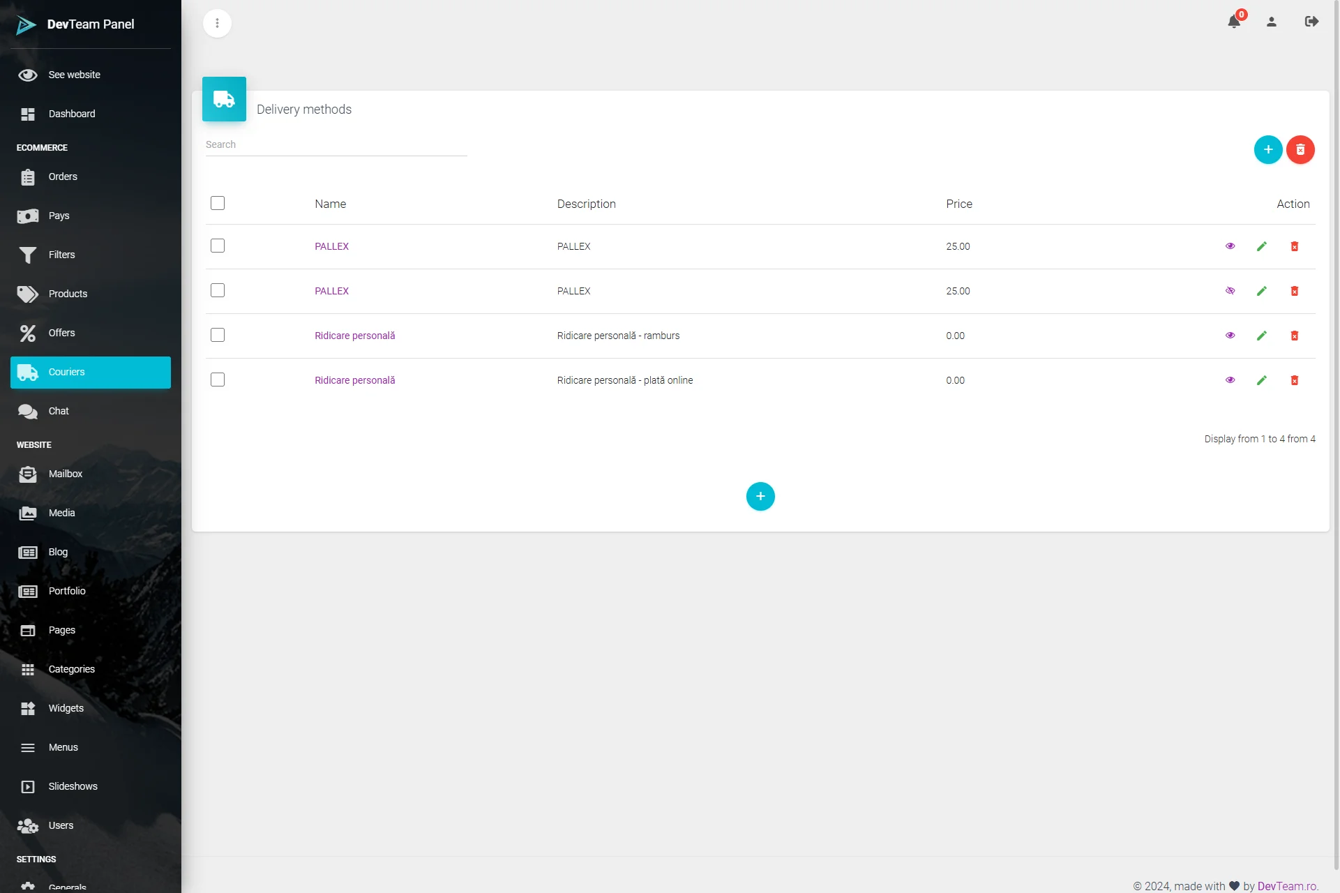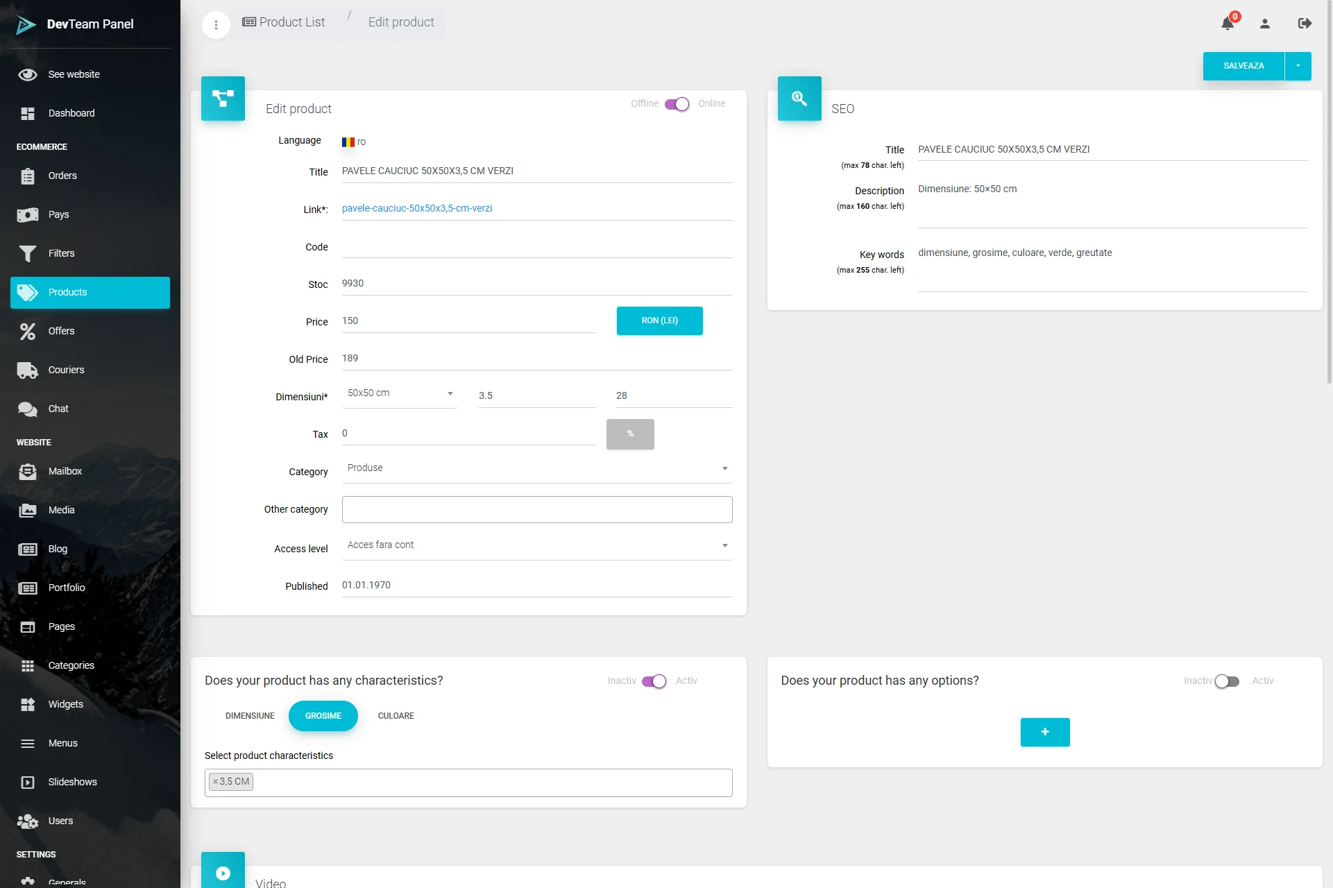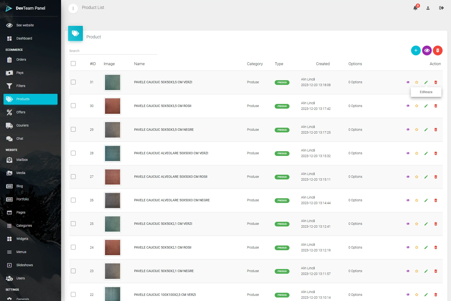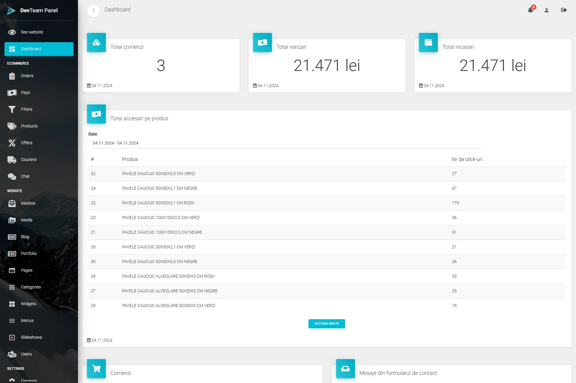 Panou de administrare: gestionare intuitivă a conținutului și produselor.