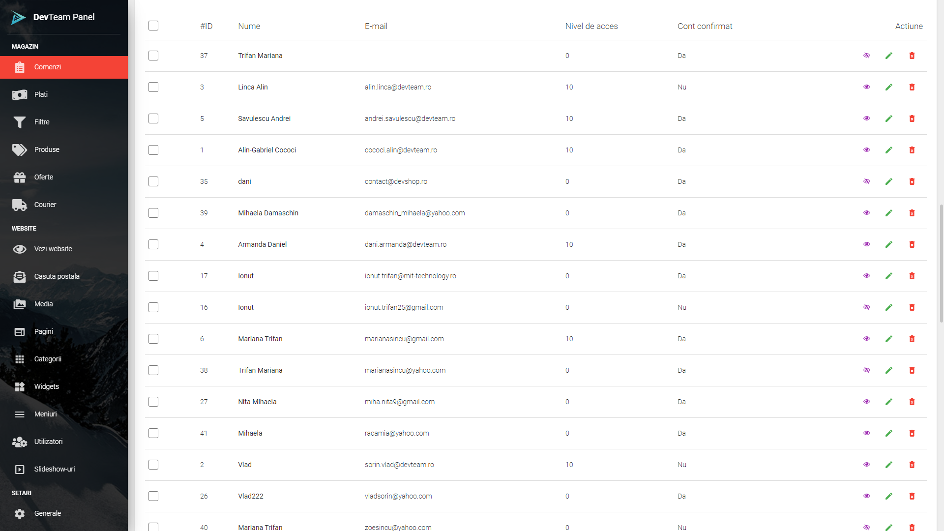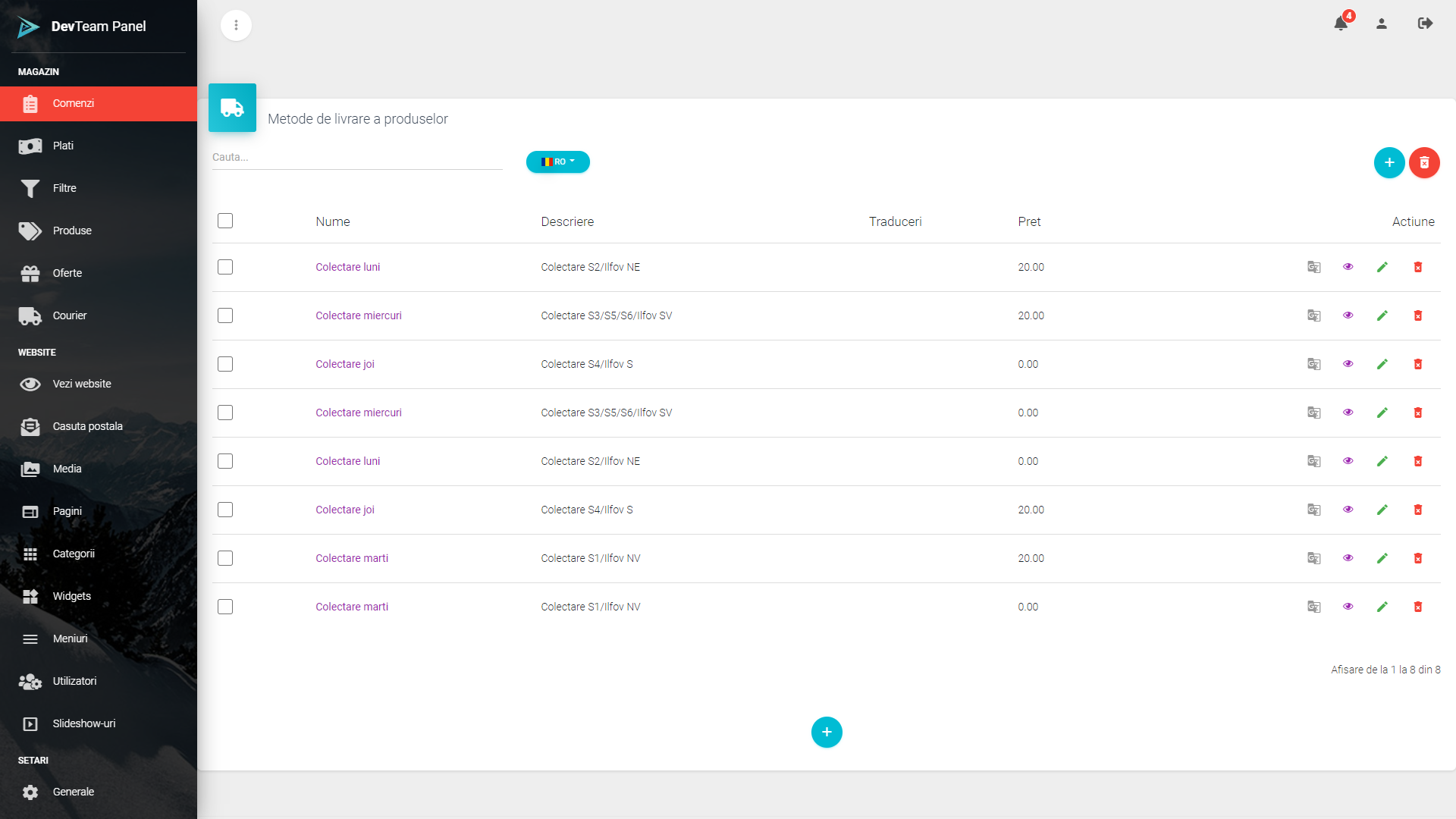 Panou de administrare: control centralizat al comenzilor, produselor și promoțiilor.