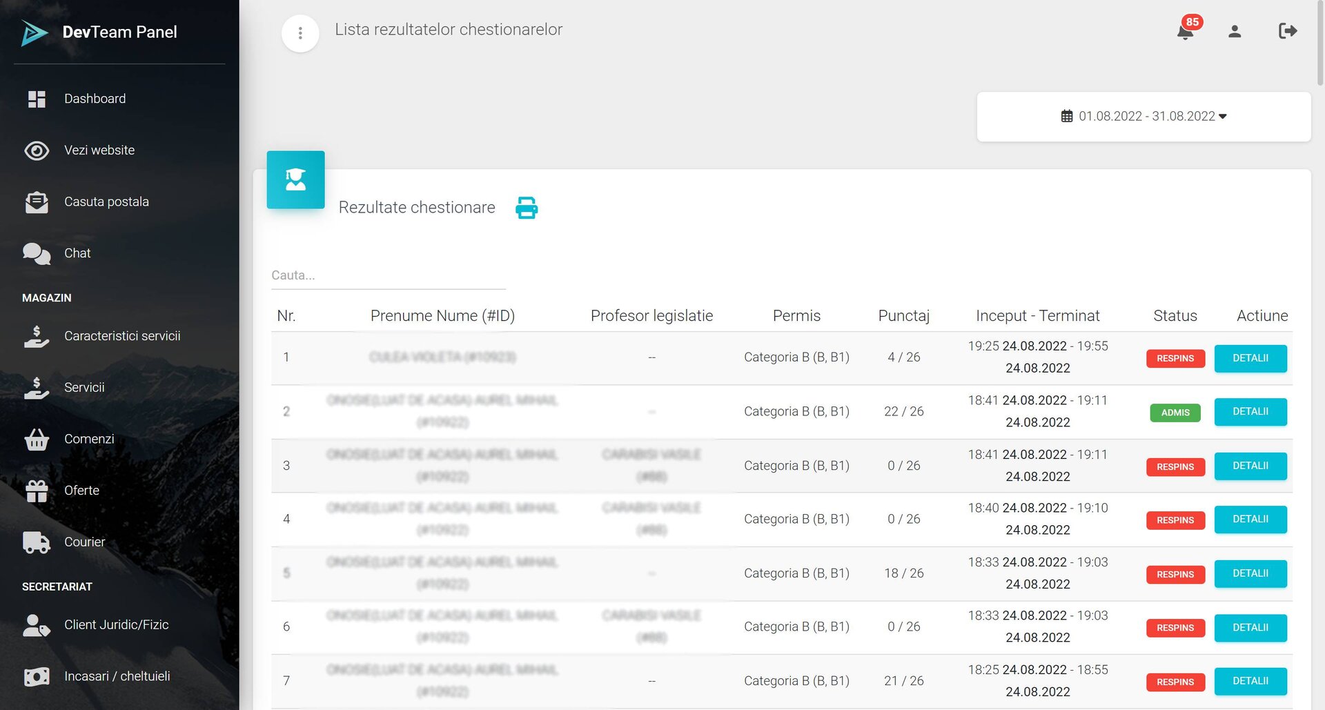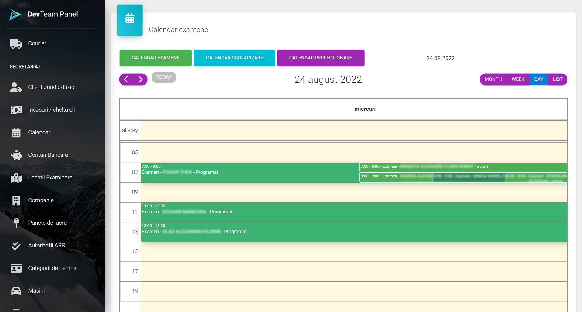 Calendar de activități: planificare automată a orelor de conducere și a sesiunilor teoretice.