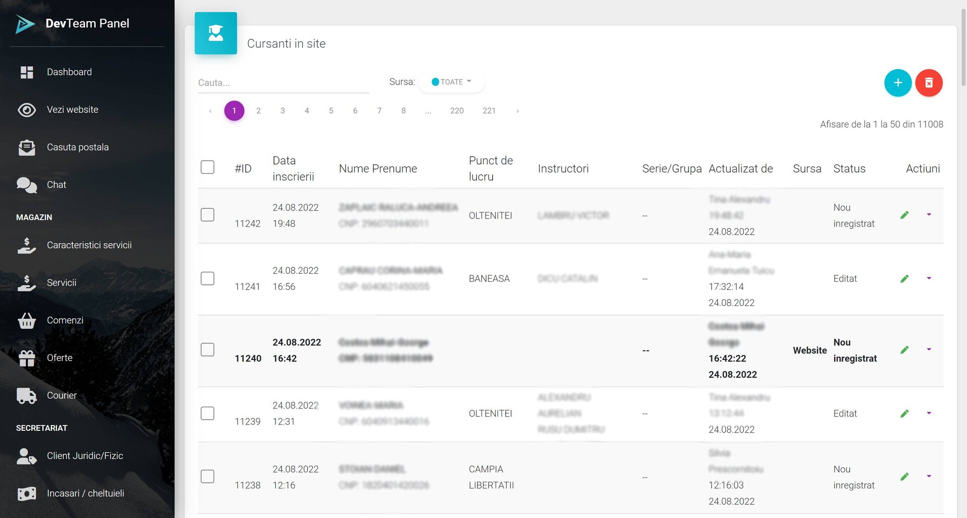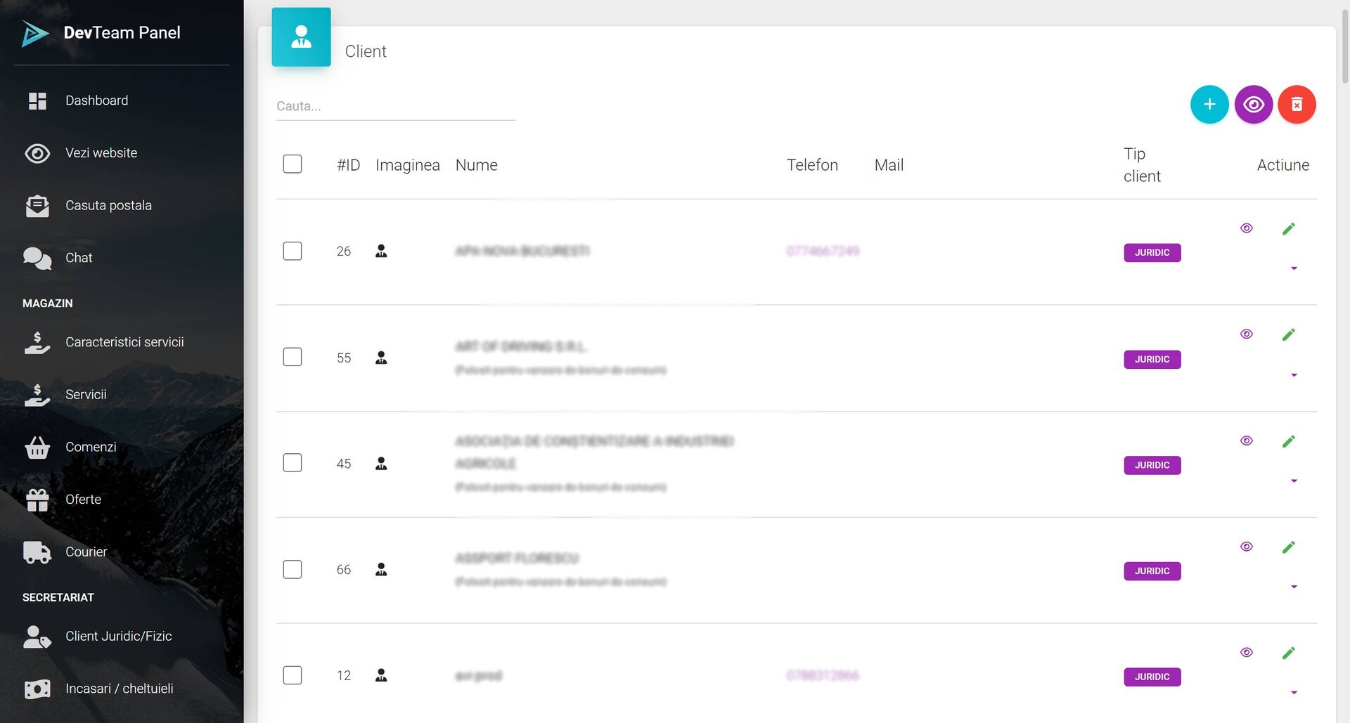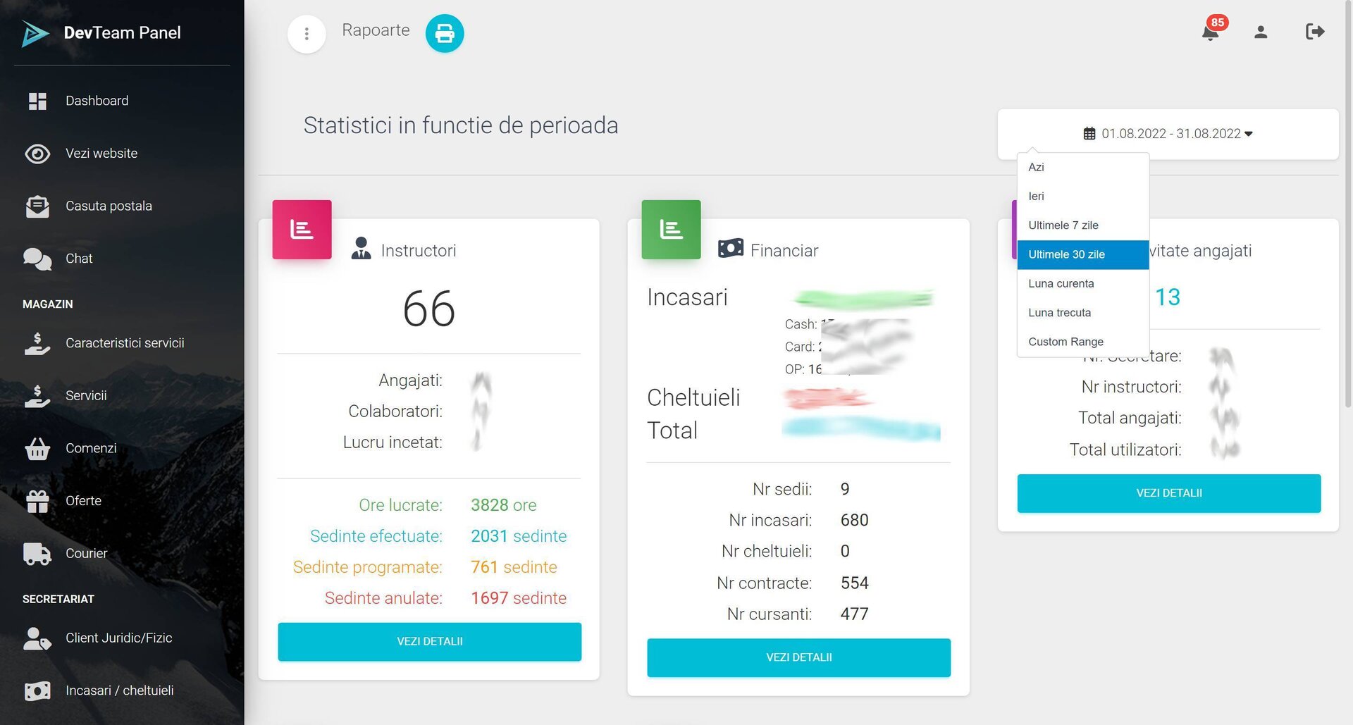 Panou de administrare: control centralizat al tuturor modulelor platformei.